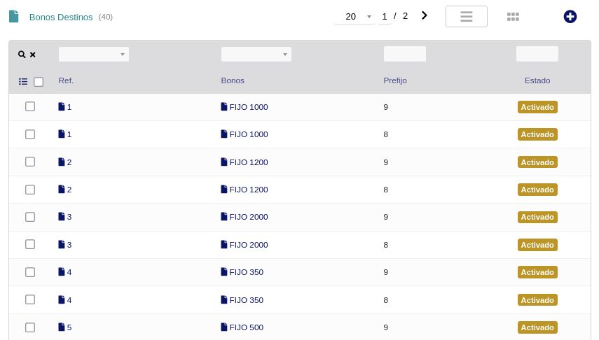 • Destinos de bonos: mapeo de prefijos a cada tipo de bono.